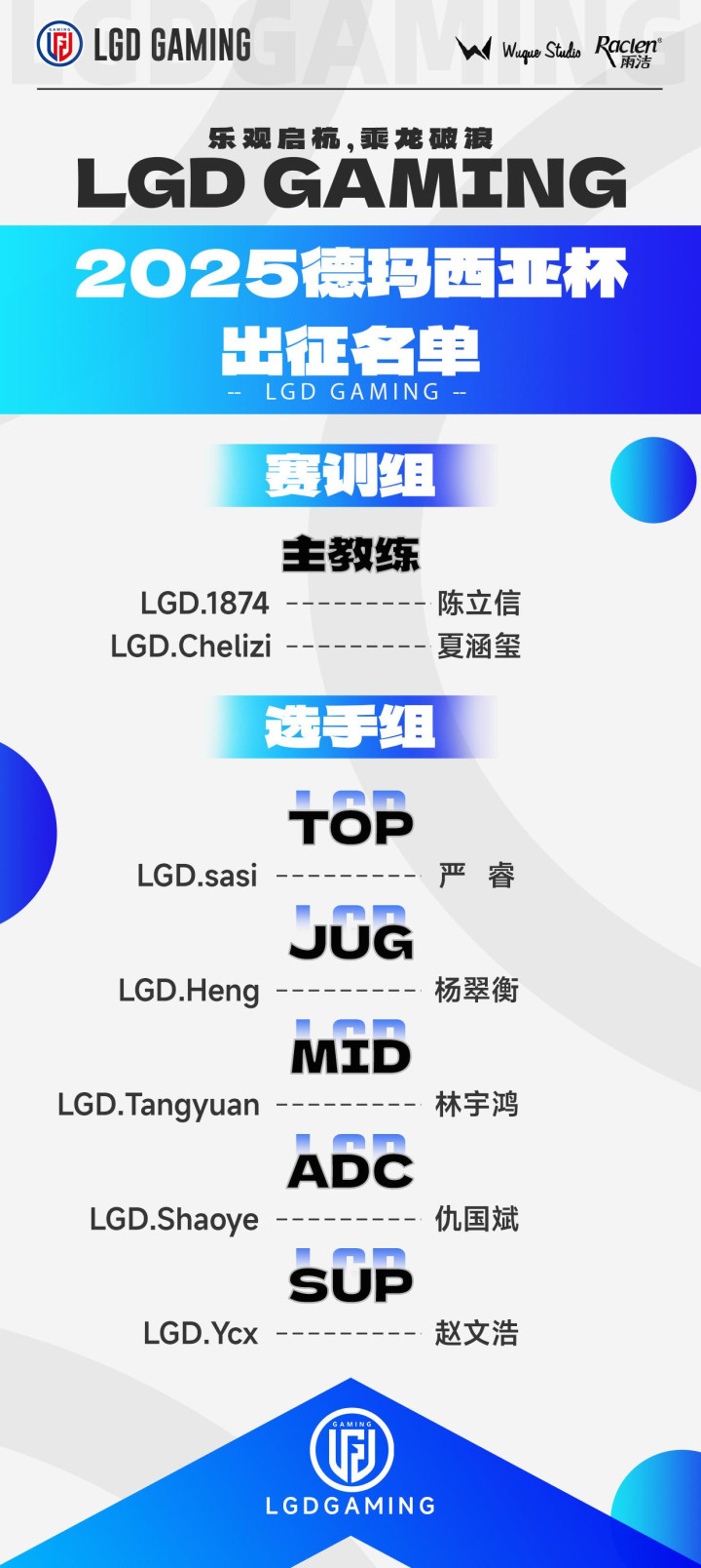 虎扑12月12日讯LGD今日官宣德杯出征大名单,具体如下: